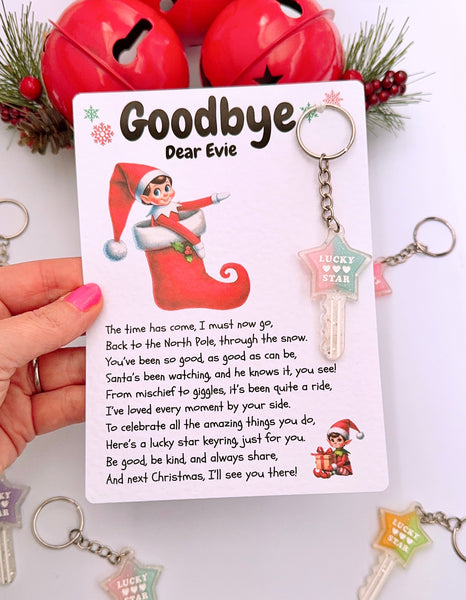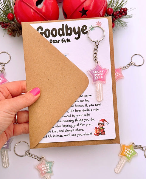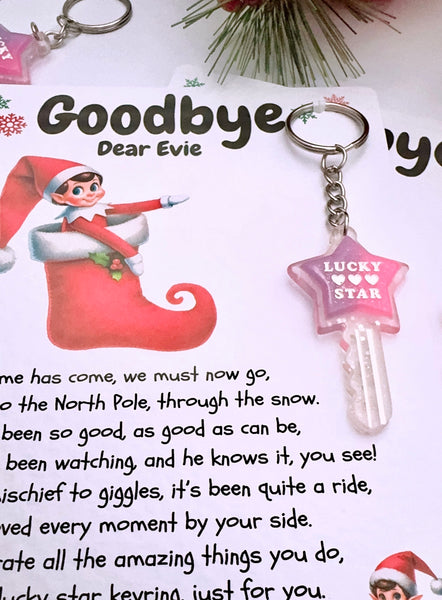 Say goodbye to the naughty/cheeky Elf/Elves this Christmas with this cute letter and pocket lucky star keyring. This gift makes the perfect unique elf goodbye gift/present.